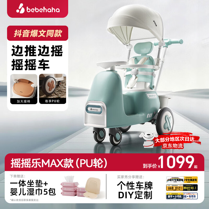 bebehaha摇摇乐婴儿推车26年款遛娃神器二合一溜马儿童手推车1-5岁莫奈绿