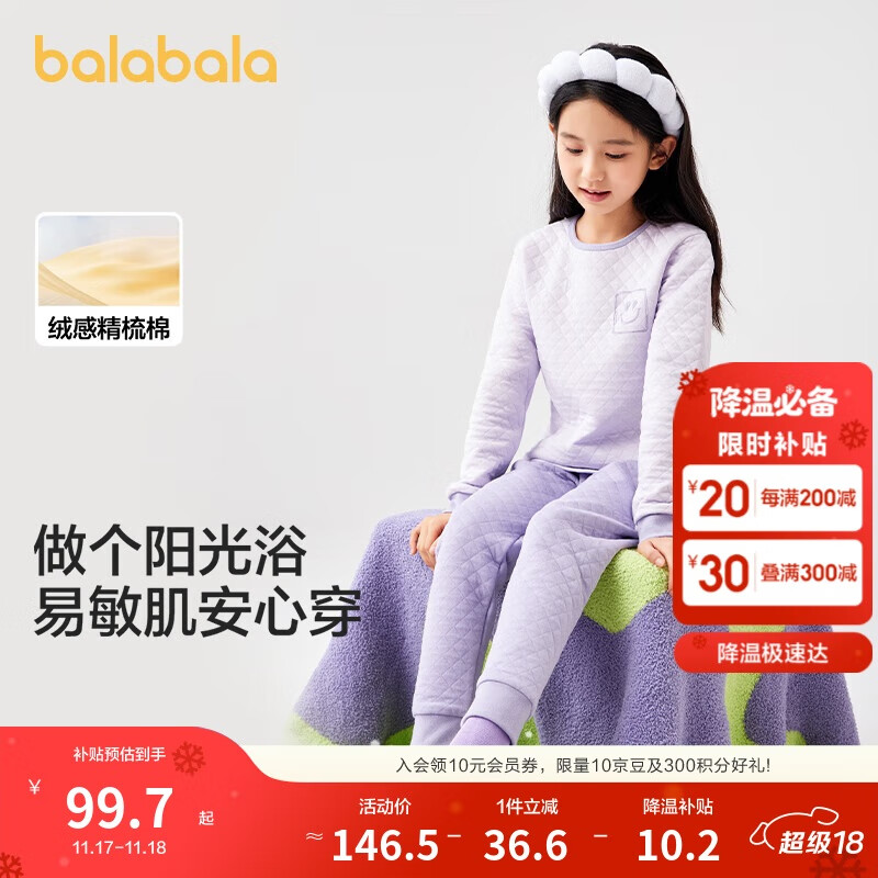 巴拉巴拉balaOne女童内衣套装儿童2件套童装2025秋冬夹棉保暖209425169001