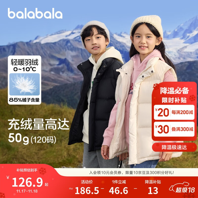 巴拉巴拉儿童羽绒马甲背心男童女童秋冬上衣轻薄24107205