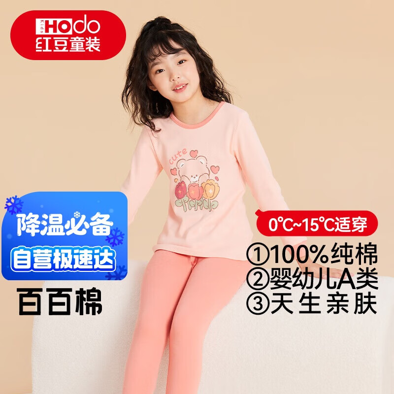红豆儿童纯棉内衣套装男女童秋衣秋裤秋冬保暖低领棉毛衫M1224橘粉130