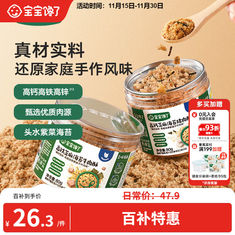 宝宝馋了高钙芝麻海苔猪肉酥80g拌饭料儿童零食无添加味精享婴儿辅食食谱