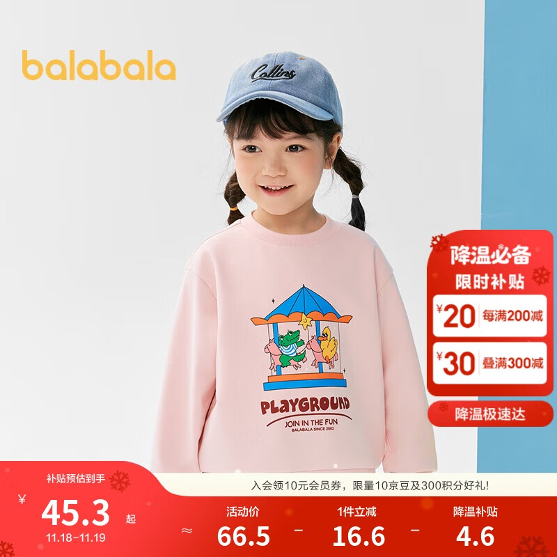 巴拉巴拉童装儿童卫衣女童男童2025春秋装宽松卡通印花上衣潮208125121207