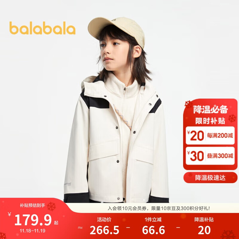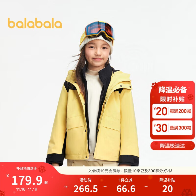 巴拉巴拉运动24冬三合一防寒防水防风中长款外套两件套【bp】208424105210