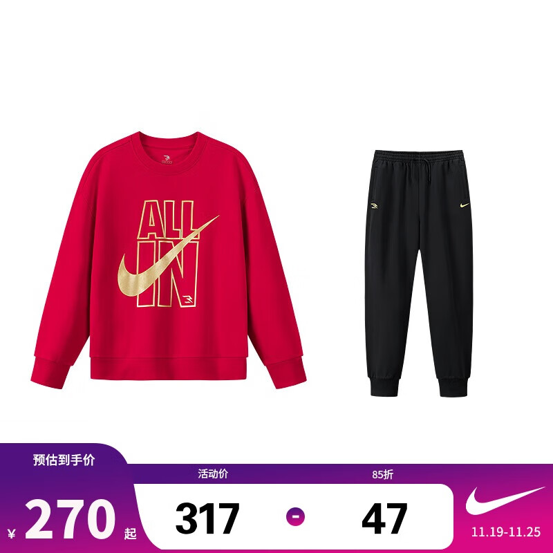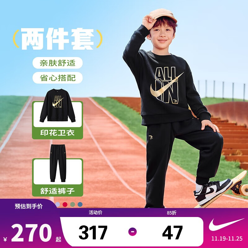 NIKE3BRAND 耐克儿童纯棉卫衣+长裤2件套25秋男女童弹力亲肤舒适套装