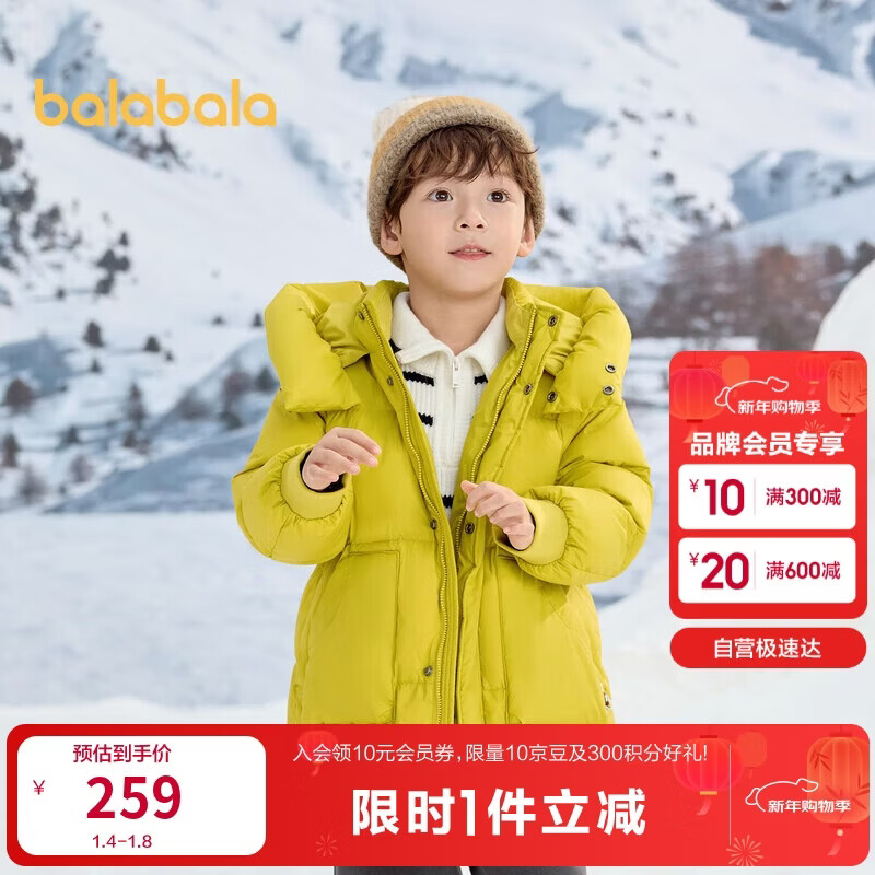 巴拉巴拉儿童羽绒服中长款连帽男童女童冬装外套保暖童装