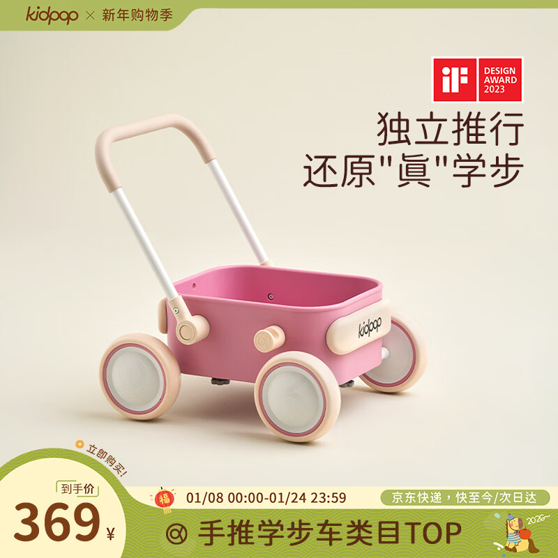 kidpop婴儿学步车7个月-3岁多功能手推车可调速助步车周岁礼物 童话粉