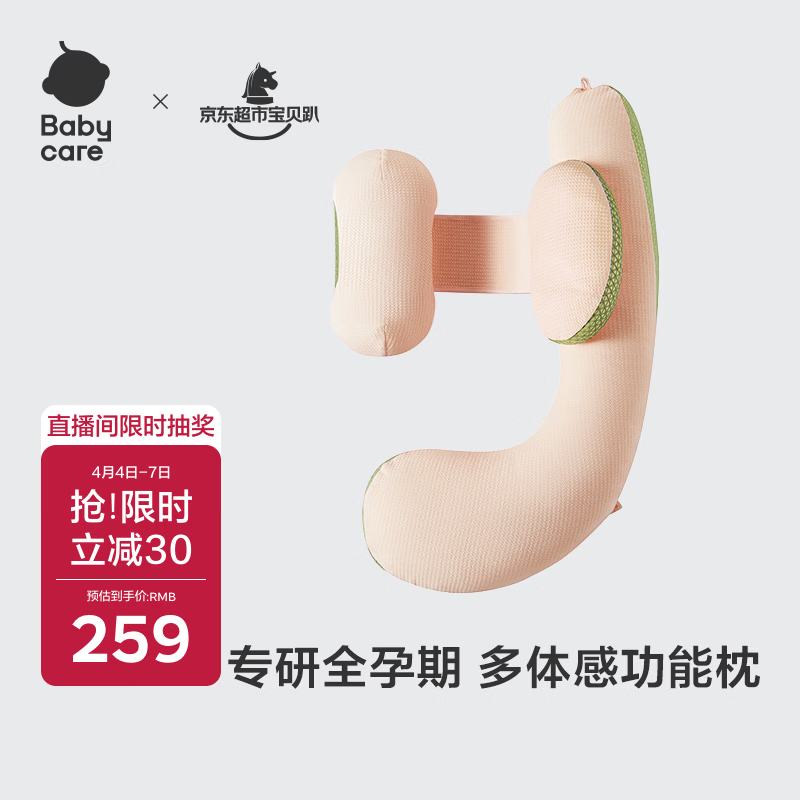 babycare孕妇枕护腰侧睡U型靠枕芯 多功能托腹抱枕 暖珊瑚(不含头枕)