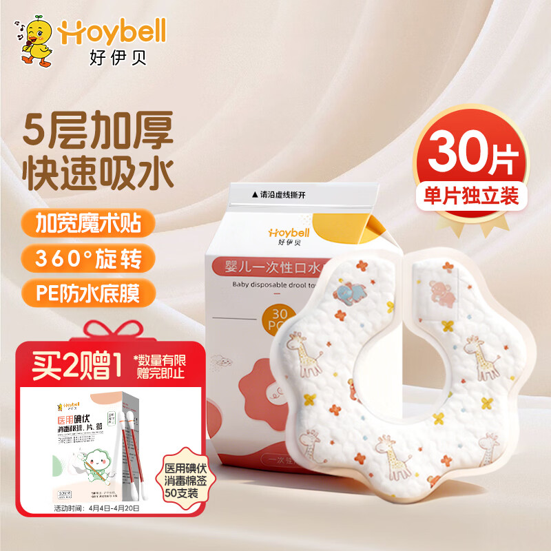 好伊贝(HOY BELL)婴儿一次性围兜30片360度可旋转宝宝围嘴口水巾免洗饭兜独立包装
