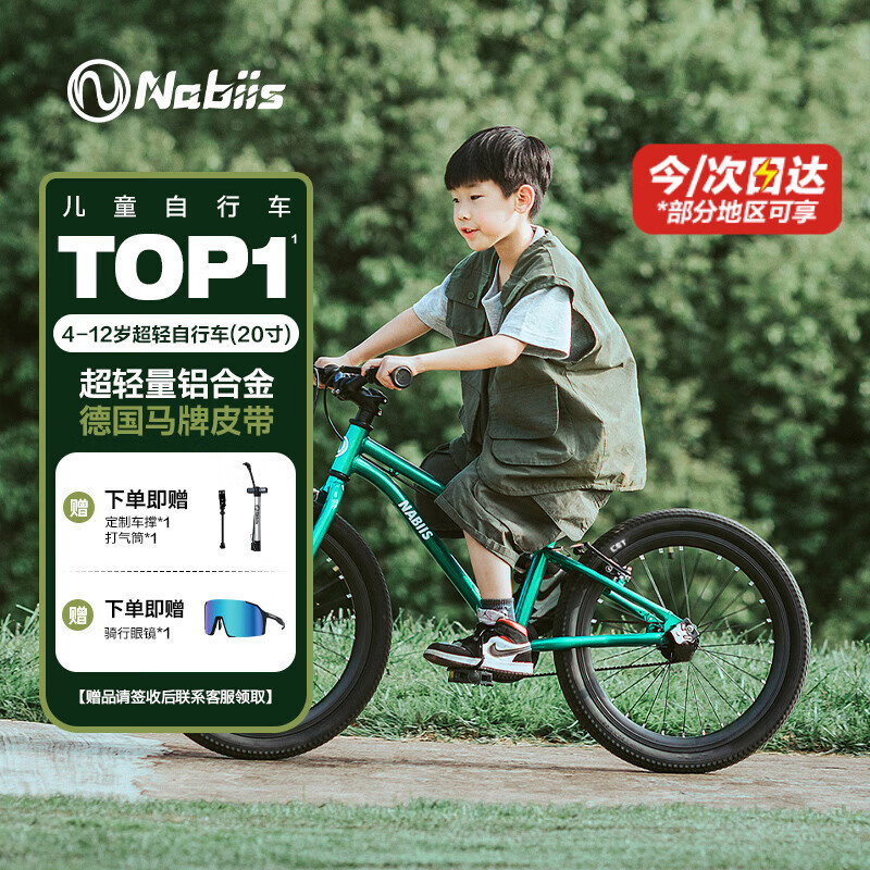 Nabiis那贝斯儿童自行车6-7-10-12岁铝合金超轻青少年学生单车20寸高绿