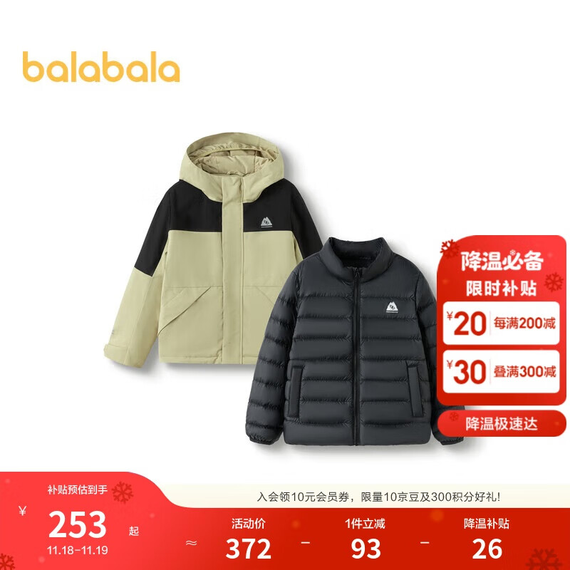 巴拉巴拉童装儿童羽绒服男童冬外套防护两件套潮24107114