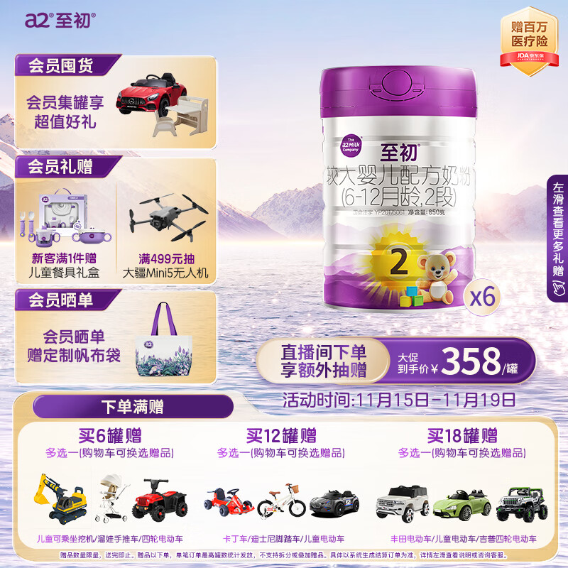 a2至初2段奶粉较大婴幼儿配方奶粉6-12月850g*6罐二段奶粉乳铁蛋白