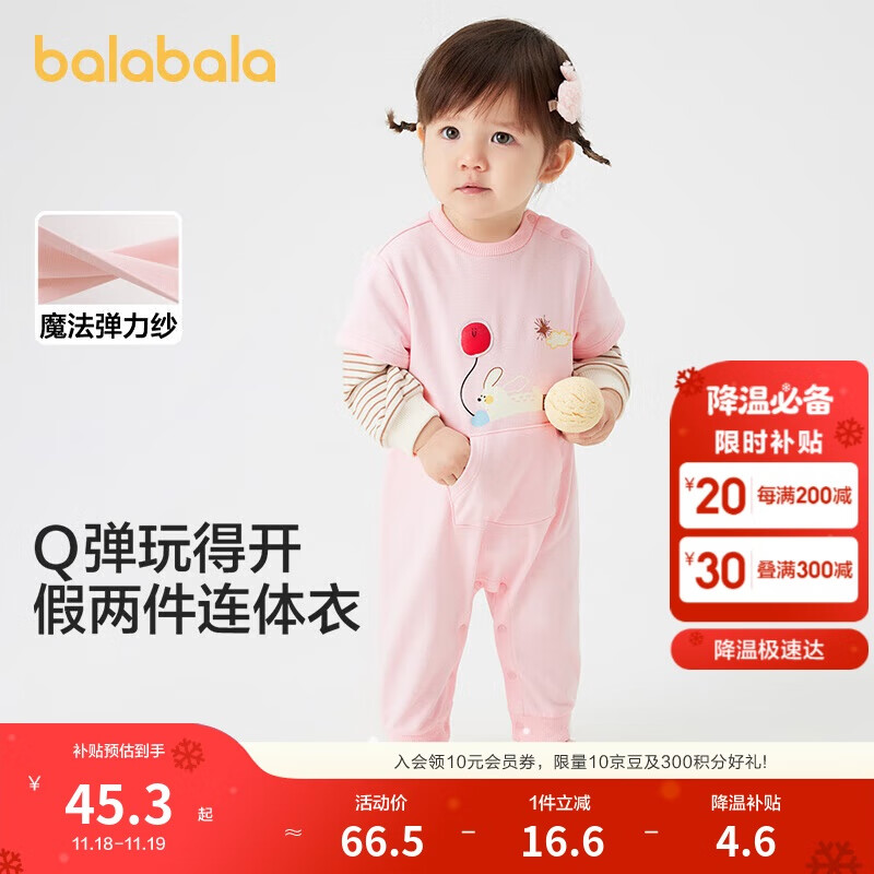 巴拉巴拉婴儿衣服连体衣秋装宝宝外出包屁衣2024假两件时髦潮208324120203