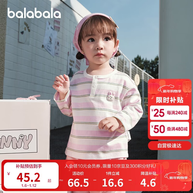 巴拉巴拉童装儿童长袖t恤打底衫男童女童条纹上衣2025秋209325100202
