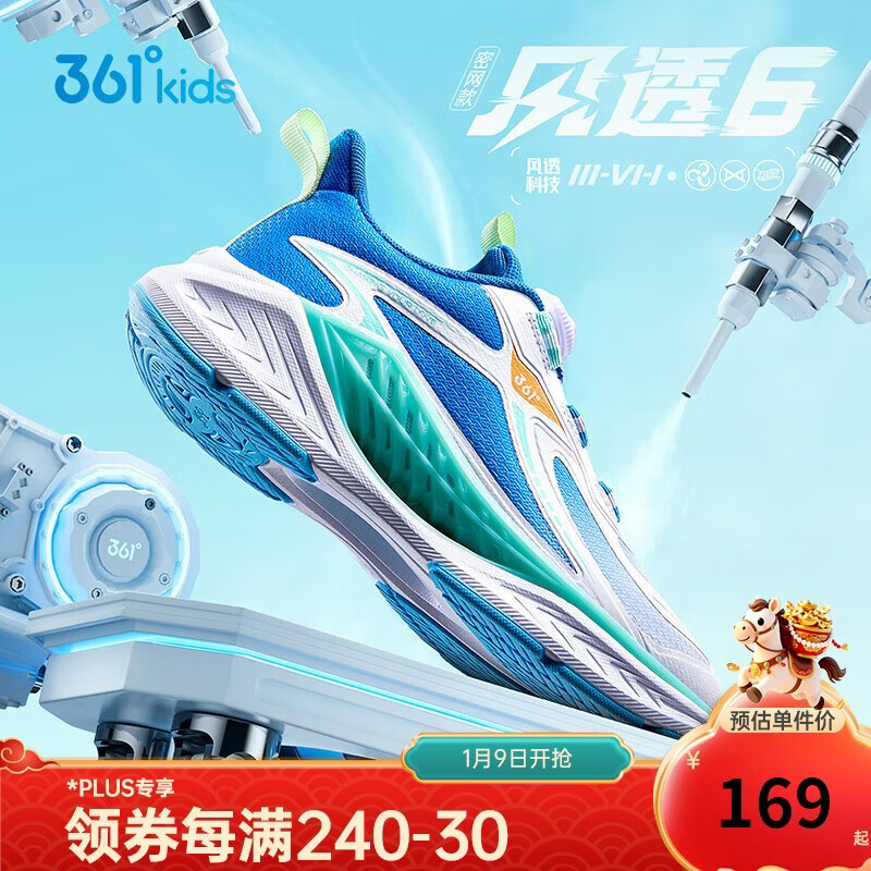 361°风透6.0儿童跑鞋25秋男女童轻弹缓震专业旋钮运动鞋 蓝39