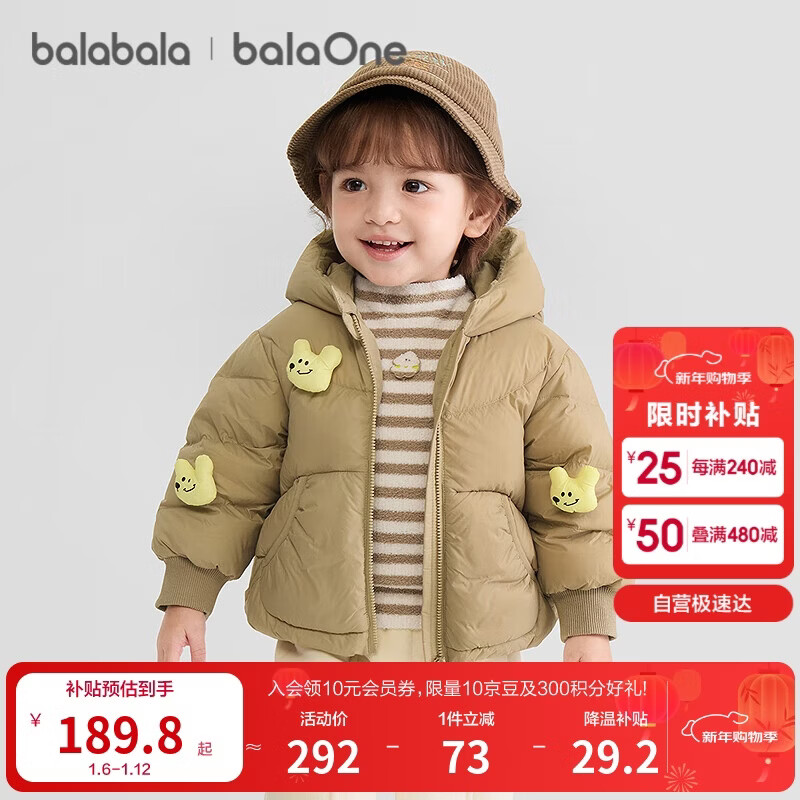 巴拉巴拉童装宝宝羽绒服三防男童冬装女童连帽外套萌趣2025新款面包服外套