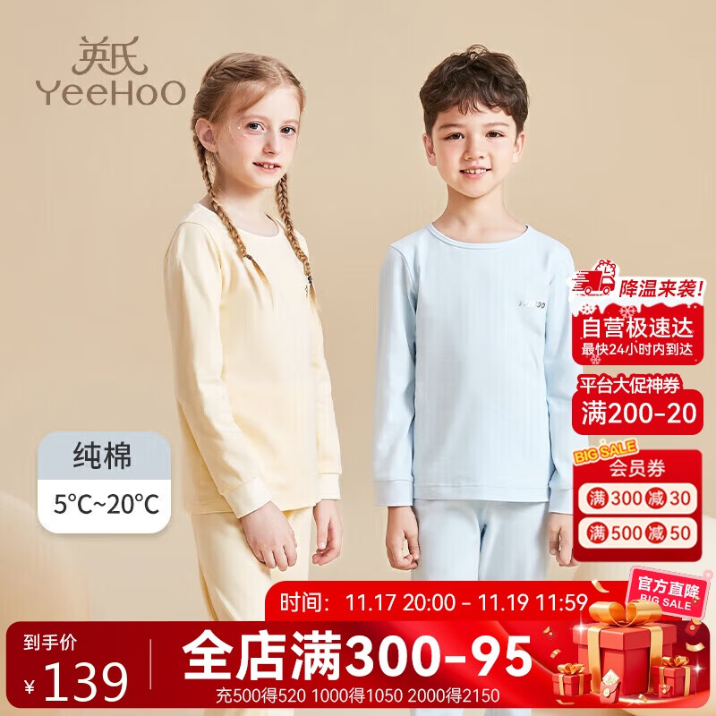 英氏儿童秋衣秋裤套装纯棉秋薄款睡衣大童男女童青少年初中生保暖内衣