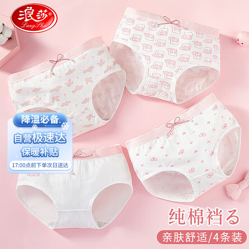 浪莎儿童内裤女童内裤学生成长期三角少女内裤中大童女孩4条装内裤150