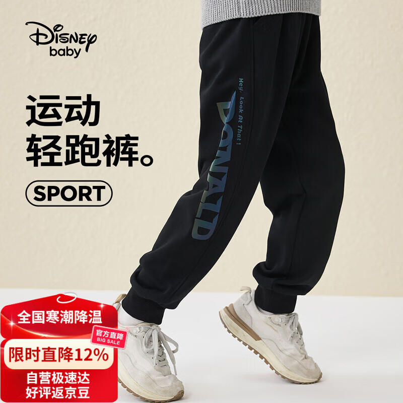 迪士尼(DISNEY)童装儿童男童针织运动长裤棉质舒适休闲裤子25春秋DB331AA01黑140