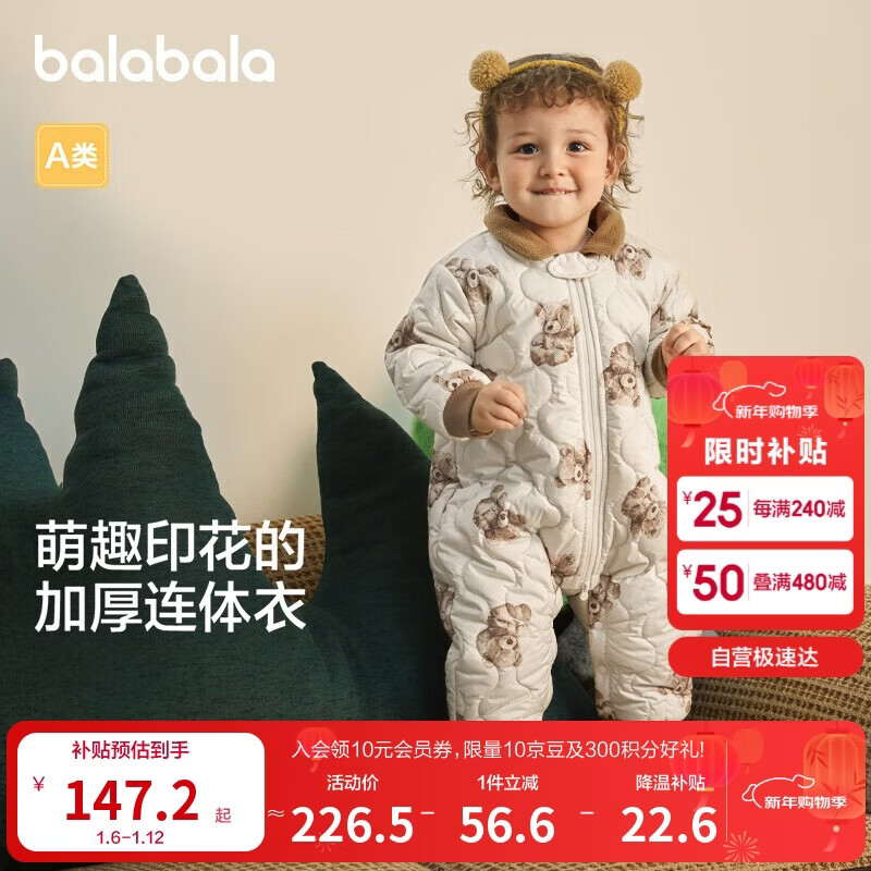巴拉巴拉童装连体衣婴儿冬装外出加绒加厚抱衣爬服男童女童儿童宝宝