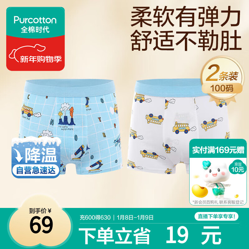 全棉时代儿童内裤男童四角裤宝宝全棉中大童内裤 火山+白底 100cm
