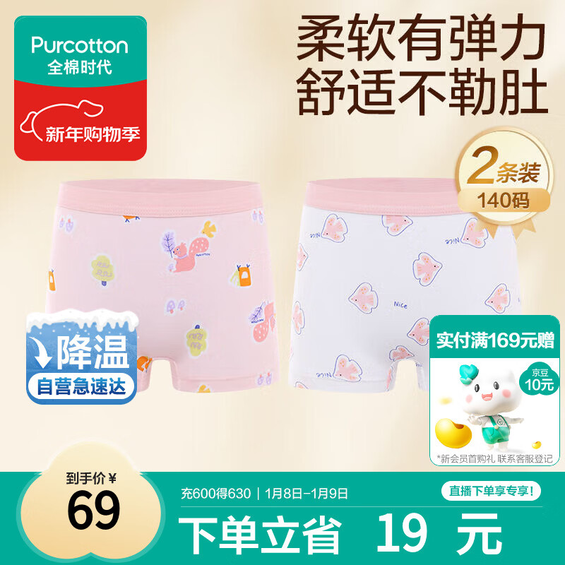 全棉时代儿童内裤女童平角裤宝宝全棉中大童内裤 松鼠+小鸟 100cm