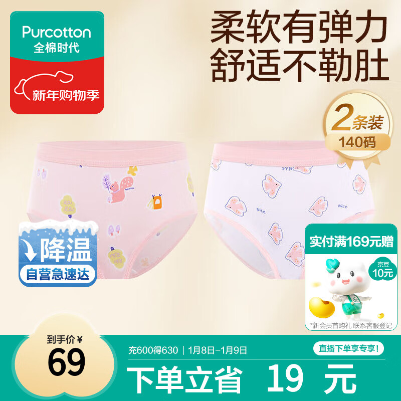 全棉时代儿童内裤女童平角裤宝宝全棉中大童内裤 松鼠+小鸟 140cm