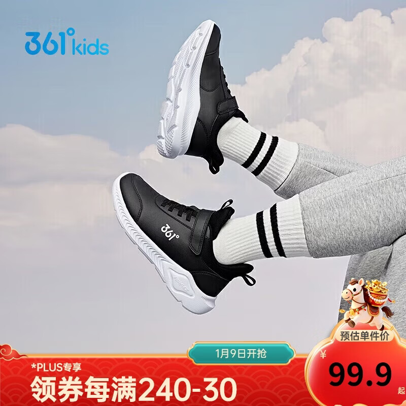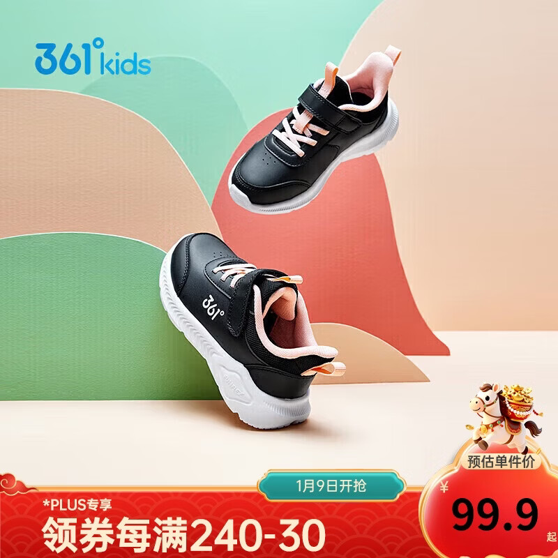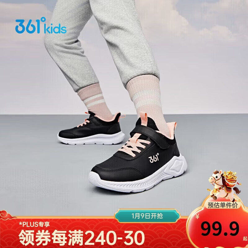 361°童鞋 儿童运动鞋2冬季男女童3-14岁皮革校园跑鞋 黑32