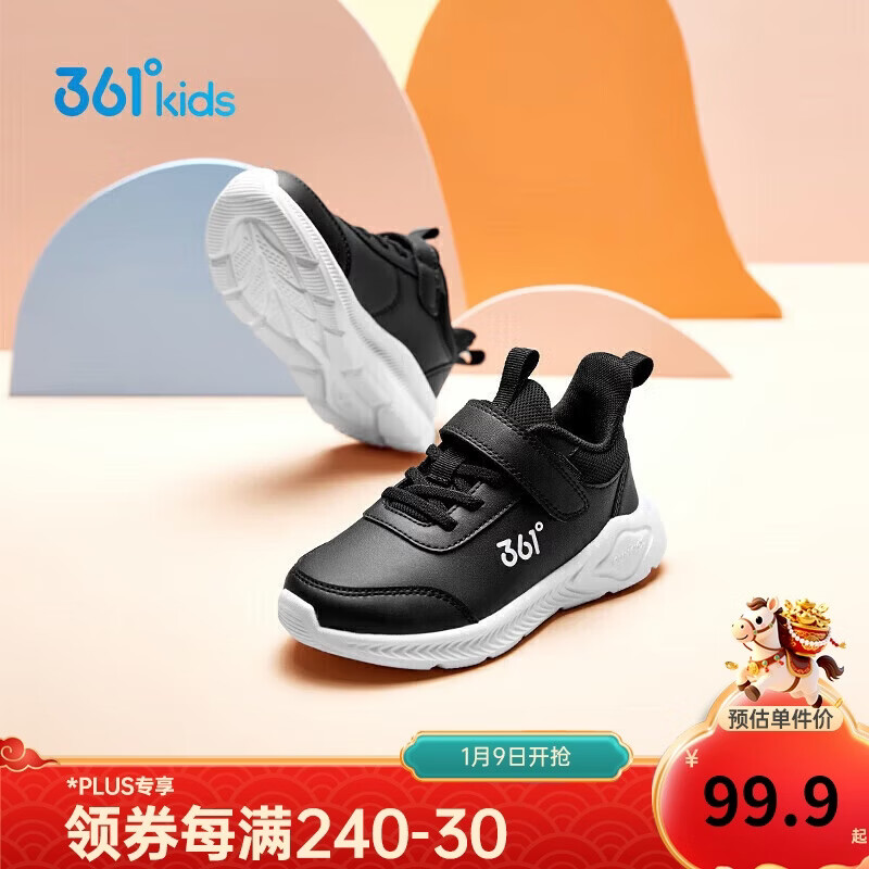 361°童鞋 儿童运动鞋25冬季男女童3-14岁皮革校园跑鞋 黑29