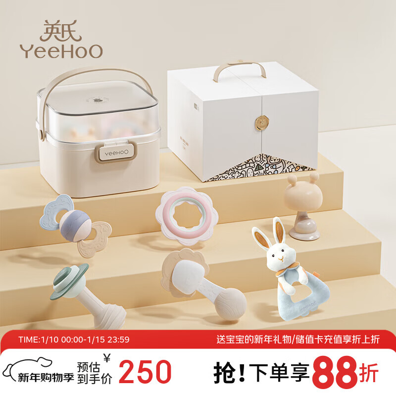 英氏(YEEHOO)婴儿玩具新生儿见面礼物0-6个月手摇铃儿童礼盒高档牙胶满月用品