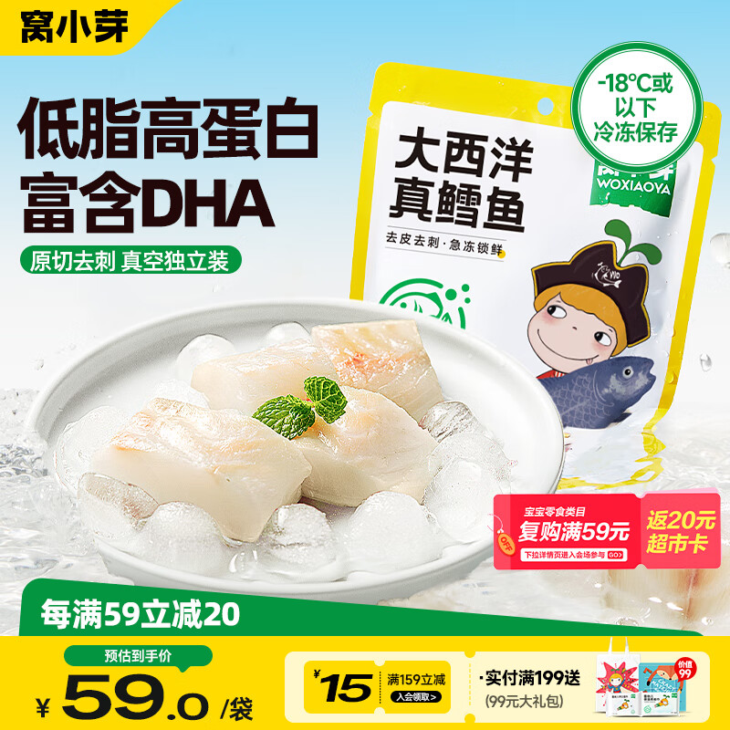 窝小芽大西洋真鳕鱼 原切鳕鱼儿童早餐冷冻去皮去刺210g/袋(内含7包)