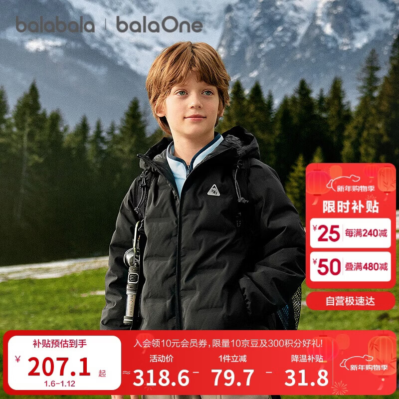 巴拉巴拉balaOne儿童羽绒服男童女童童装2025年冬季户外防护208425107233