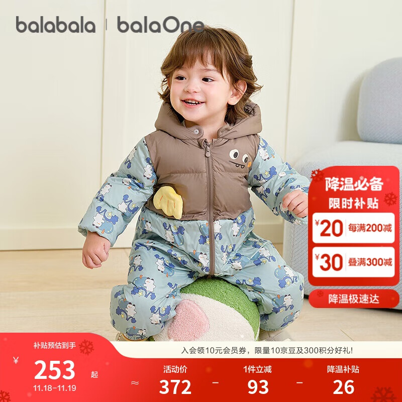 巴拉巴拉童装婴儿羽绒服连体衣2025宝宝冬装加厚保暖哈衣爬服208425120217