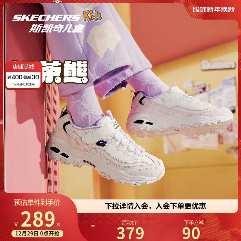 Skechers斯凯奇自营儿童奶茶熊童鞋秋冬女童运动鞋大童跑鞋熊猫鞋302526L
