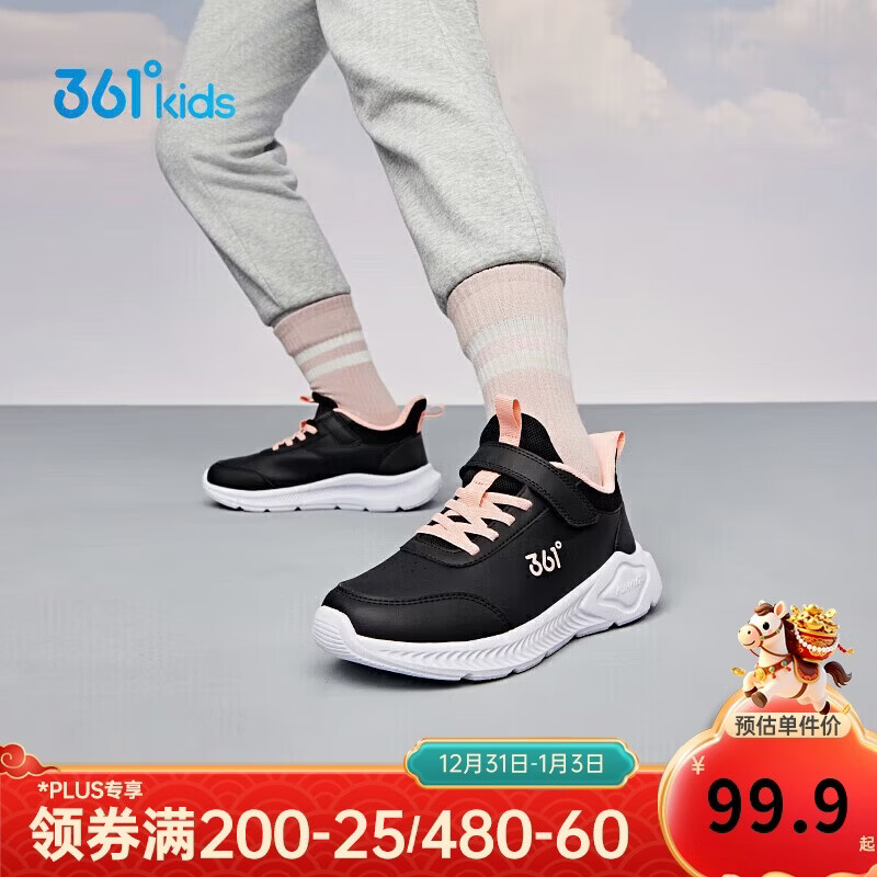 361°童鞋 儿童运动鞋25冬季男女童3-14岁皮革校园跑鞋 黑36