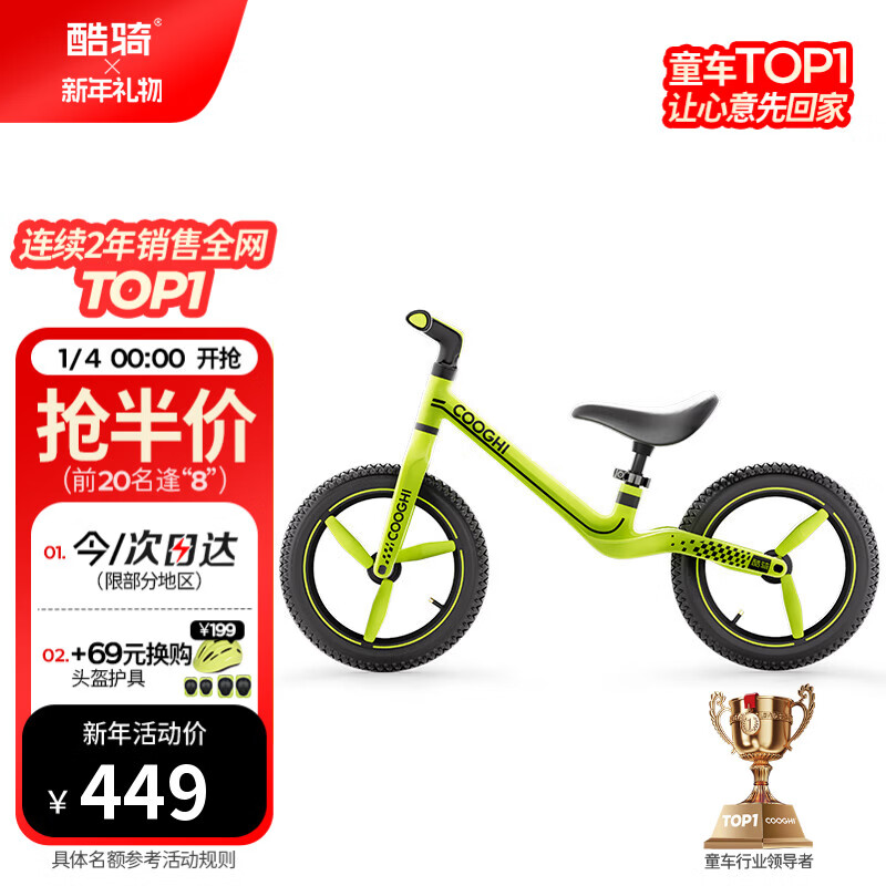 酷骑儿童平衡车3-8岁宝宝滑步车14寸轻便车身大童休闲充气轮S4 酷奇