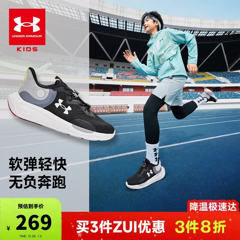 安德玛(Under Armour)男女大童网面透气高弹防滑束带体考跑步鞋2511104 黑/白 40