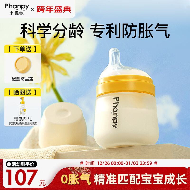 小雅象防胀气玻璃奶瓶新生儿0-3个月婴儿奶瓶 160ml S号奶嘴(标准款)