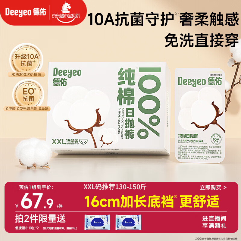 德佑一次性内裤女孕产妇出差生理期纯棉内裤10A抑菌XXL码15条