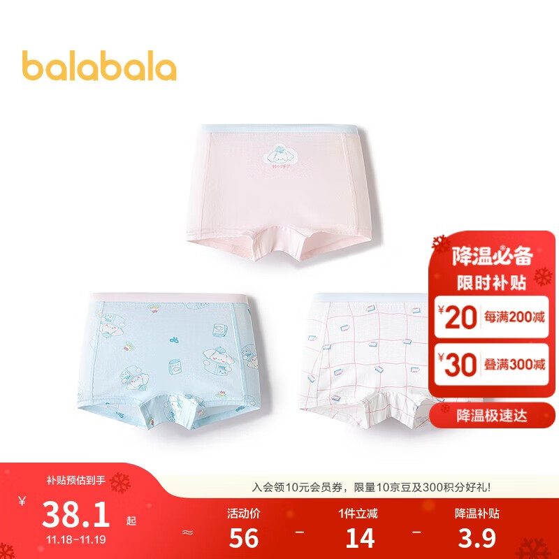 巴拉巴拉女童内裤棉平角小中大童四角短裤抗菌裆不夹P三条装208925170009
