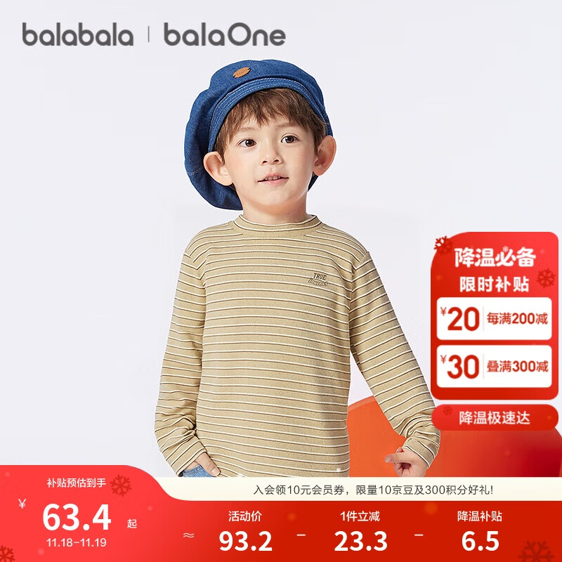 巴拉巴拉balaOne童装儿童长袖t恤男童女童2025冬季休闲打底衫208425100202