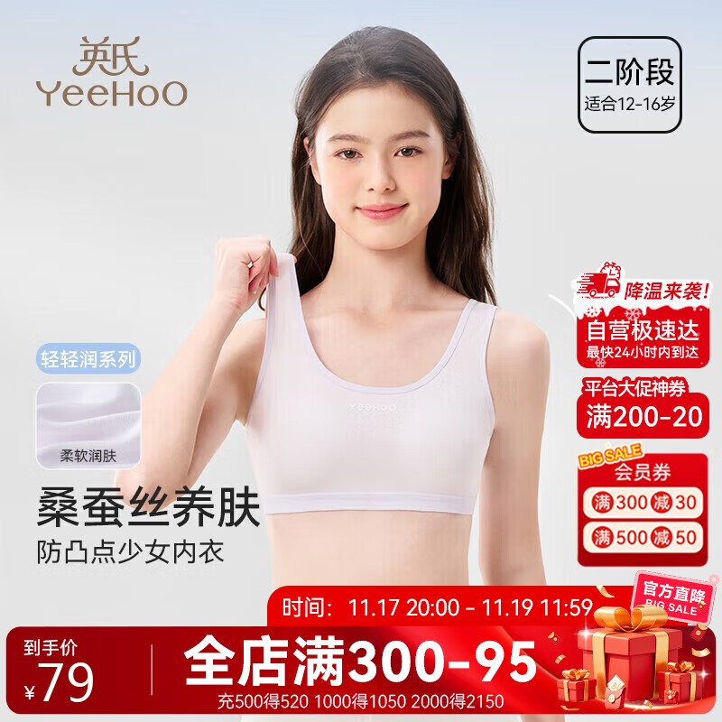 英氏60S莫代尔少女内衣发育期二阶段12-15岁初中生桑蚕丝透气女童文胸