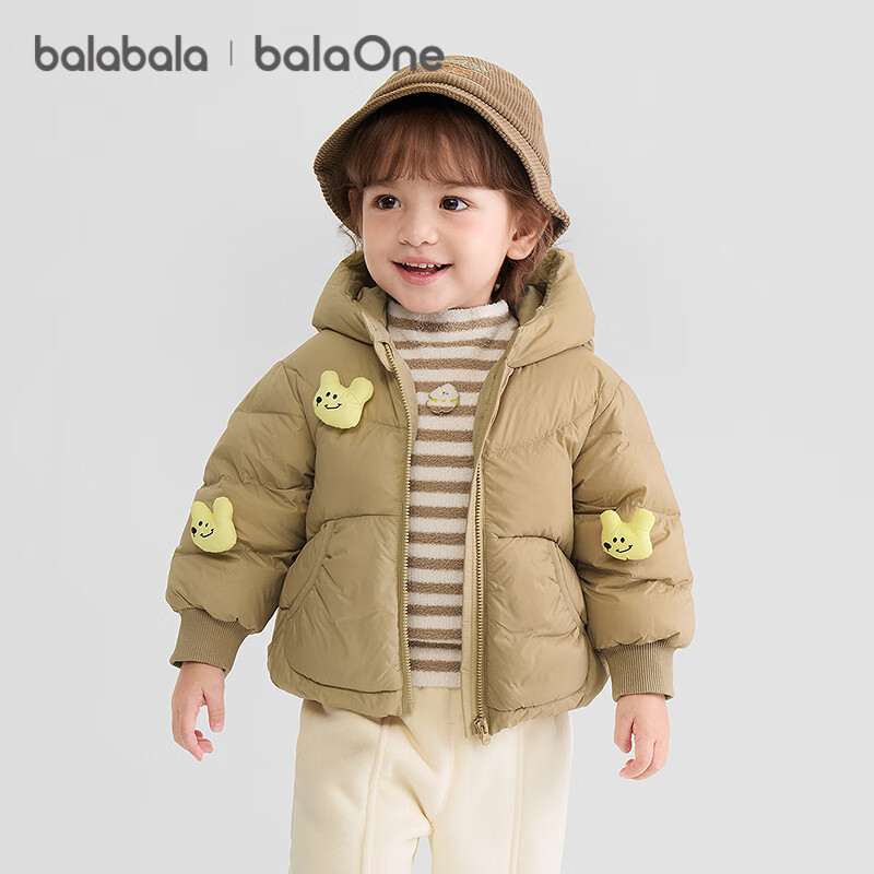 巴拉巴拉童装宝宝羽绒服三防男童冬装女童连帽外套萌趣2025新款面包服外套