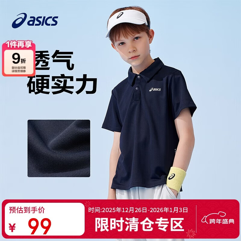 亚瑟士(asics)童装2025年夏季吸湿速干POLO领透气舒适运动短袖332251172405