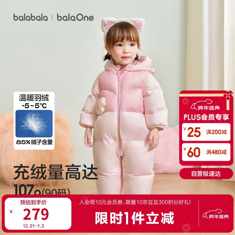 迷你巴拉【小蛋仔】巴拉羽绒服连体衣男女童儿童萌趣连帽爬服冬季新款外套