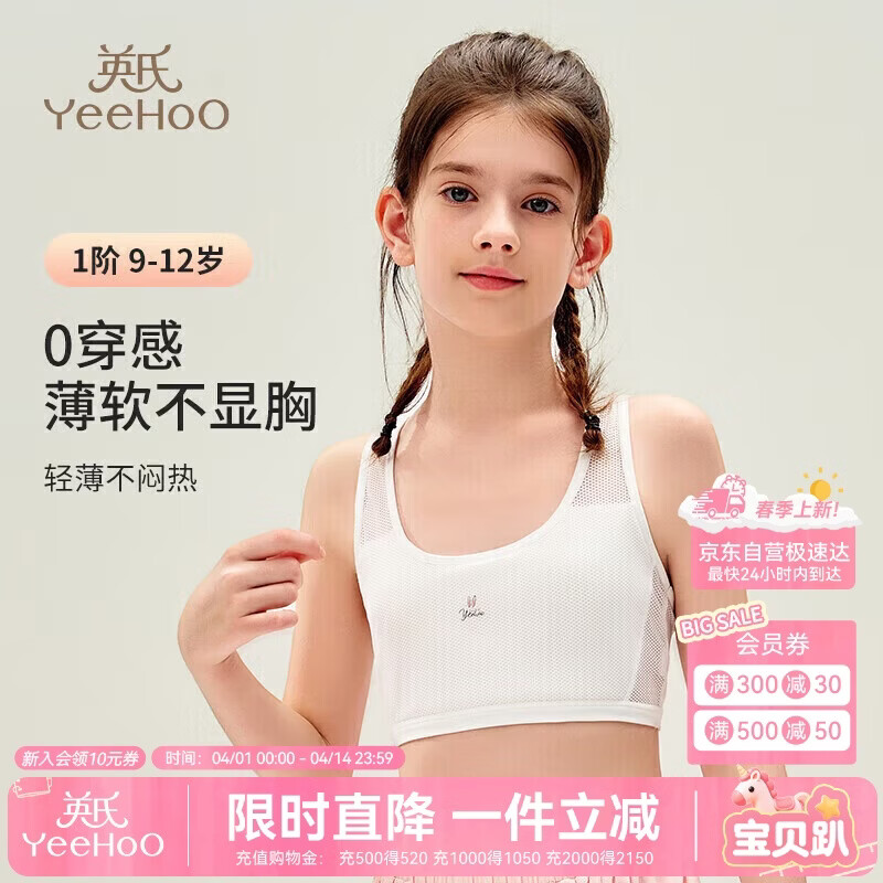 英氏女童内衣一阶段小背心工字背防凸点凉爽网眼少女内衣蓝色