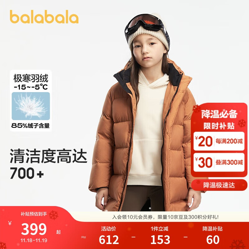 巴拉巴拉运动24冬儿童长款羽绒服防寒保暖中长款外套【bp】208424107213