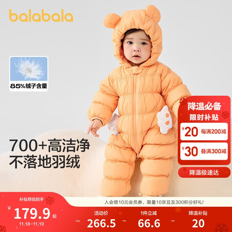 巴拉巴拉童装婴儿羽绒服宝宝连体衣新生儿2025冬加厚哈衣爬服208425120204