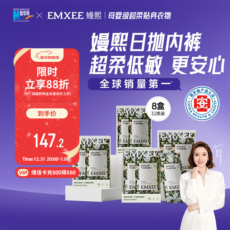 嫚熙(EMXEE)一次性内裤抑菌级女士纯棉大码日抛出差旅行免洗内裤32条XXL码