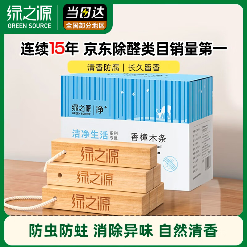 绿之源天然樟木条樟脑丸衣柜除味衣柜防虫防蛀室内30条装