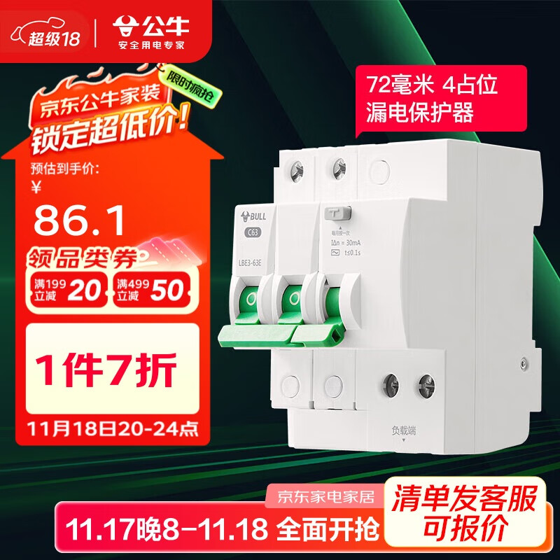 公牛(BULL)佳和LBE12漏电保护器 2P漏保断路器 家用空气开关 2P63A